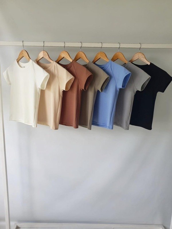 Remera manga corta confeccionada en tejido de rayón y spandex con cuello redondo y manga ranglan.