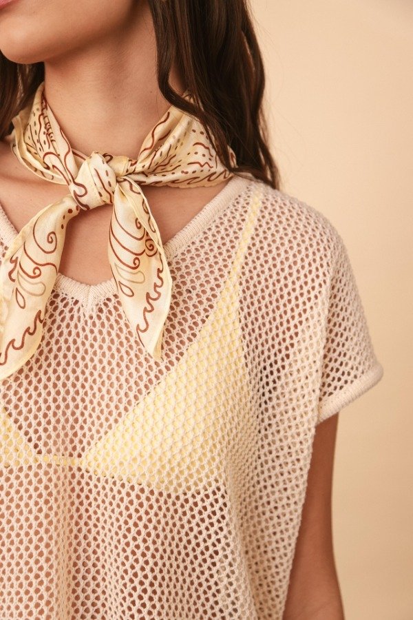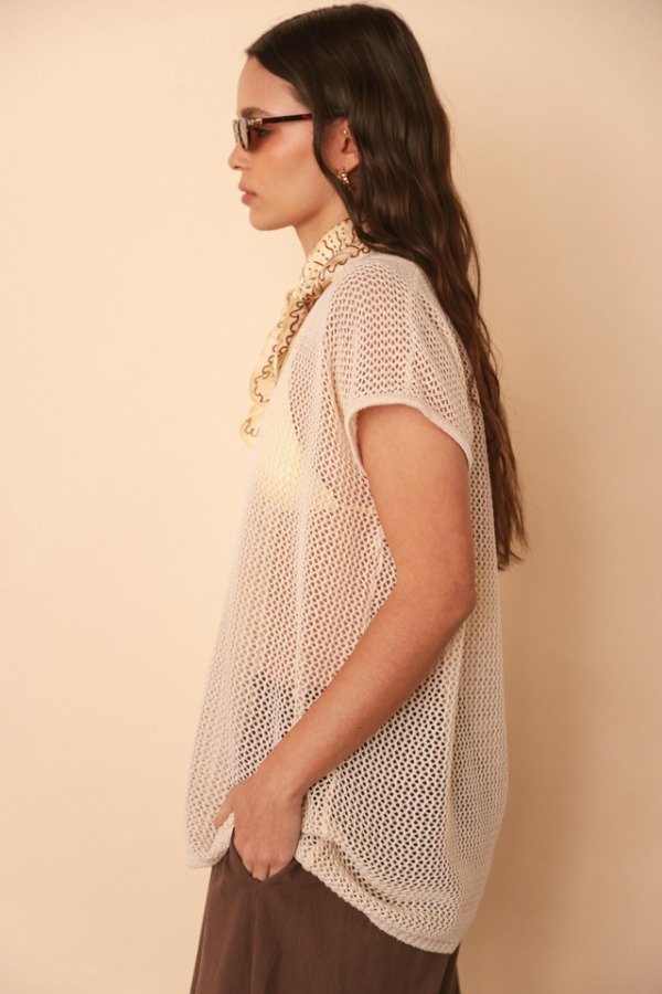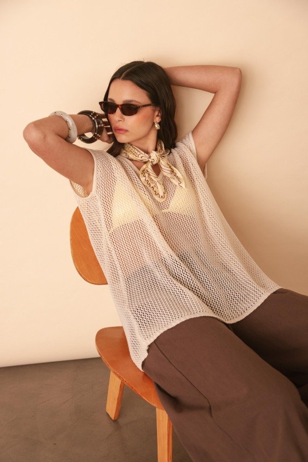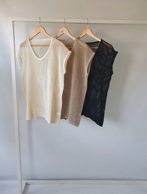 Tejido, escote en V, ideal para este verano. Calado abierto, fabricado en Argentina.